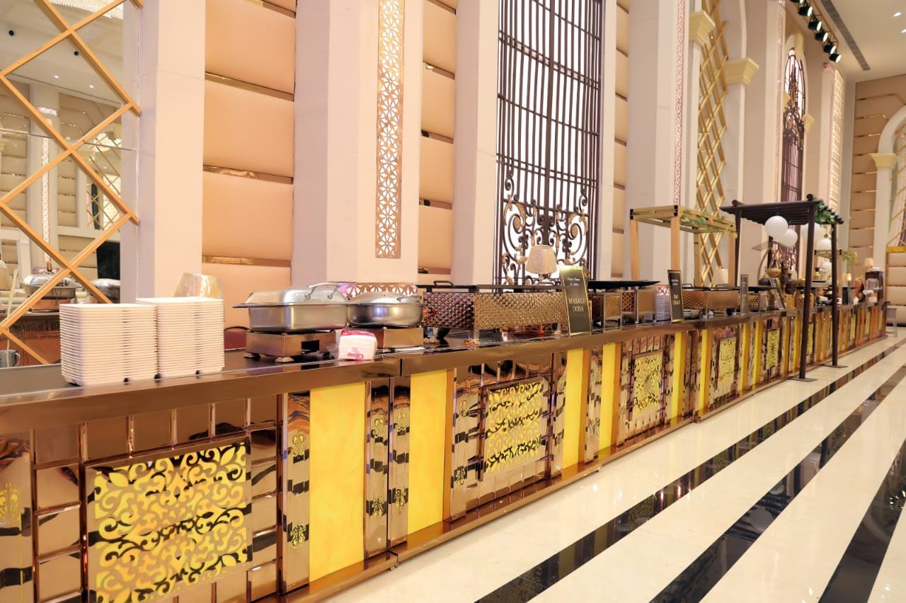 Amber Mahal’s indoor banquet hall accommodates up to 550 guests, making it ideal for weddings, corporate events, and large parties
